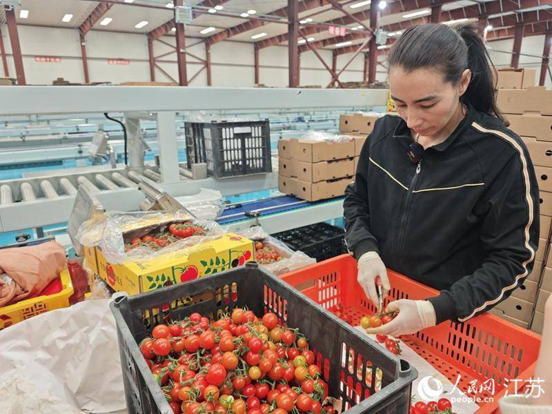阿米娜将采摘下来的番茄进行分拣装箱。人民网记者 常雨薇摄